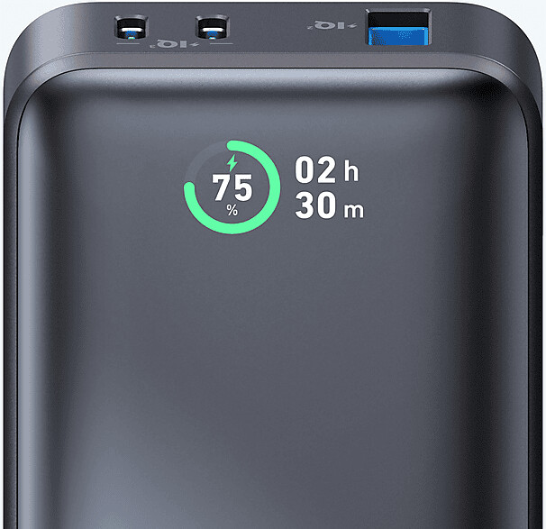 Die Anzeigen auf der Vorderseite der Powerbank zeigen an, wie lange Sie noch laden können und wie viel Prozent des Akkus die Powerbank noch hat. So werden Sie nie wieder Überraschungen erleben. Die Powerbank von Anker hat eine hohe Ladegeschwindigkeit. Sie lädt schnell auf und schont trotzdem den Akku!