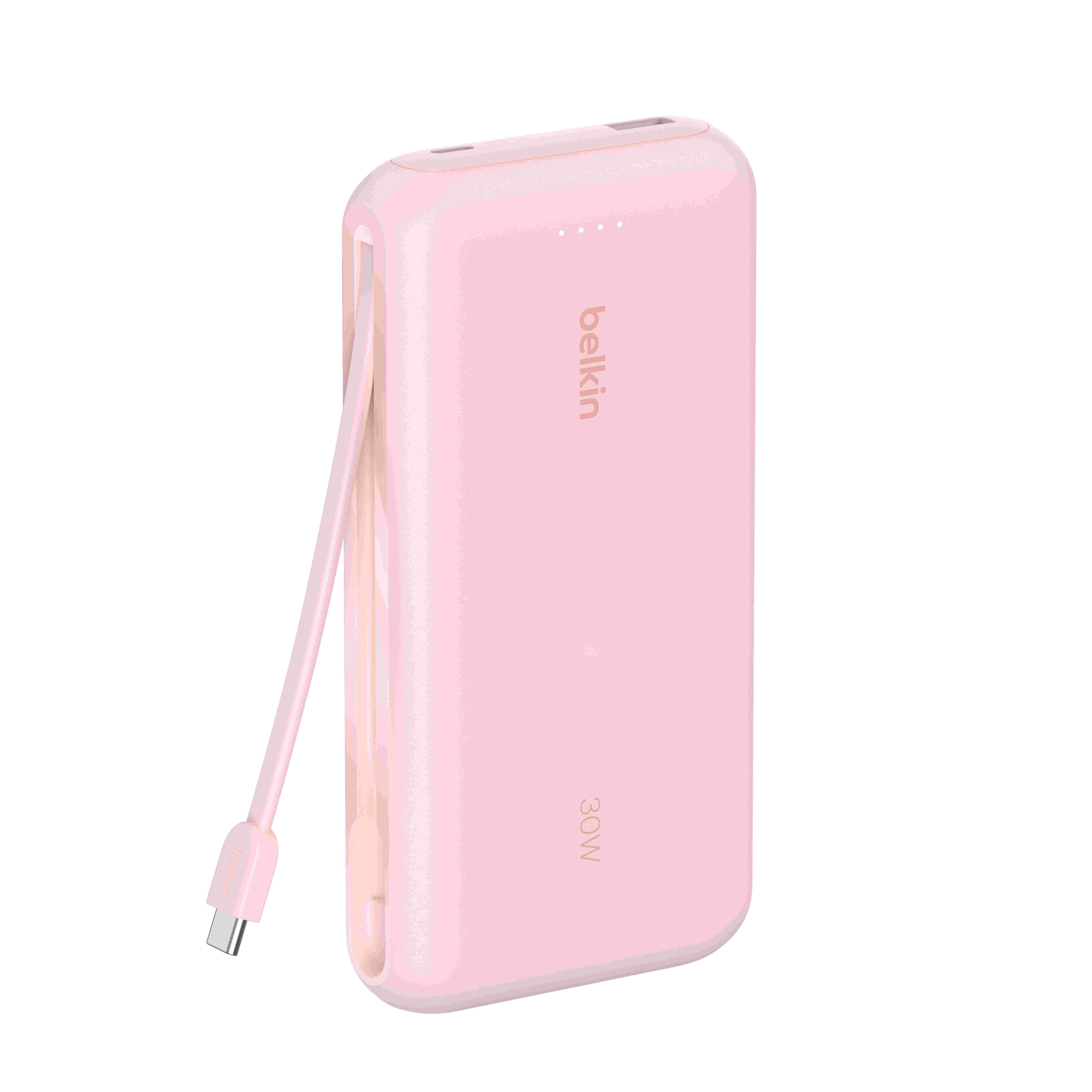 Laden Sie Geräte mit dieser leichten 10K-Powerbank mit bis zu 20 W auf. Da das USB-C-Kabel integriert ist, können Sie unterwegs bequem laden, ohne ein zusätzliches Kabel mitnehmen zu müssen. Dank des USB-C-Anschlusses kann gleichzeitig ein zweites Gerät aufgeladen werden.