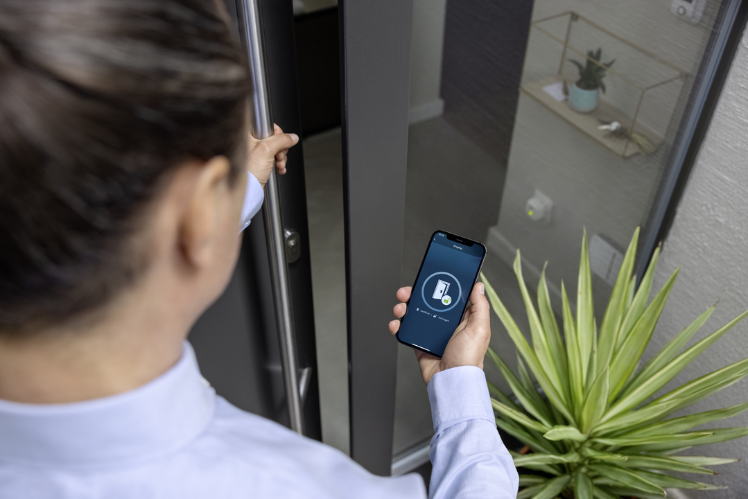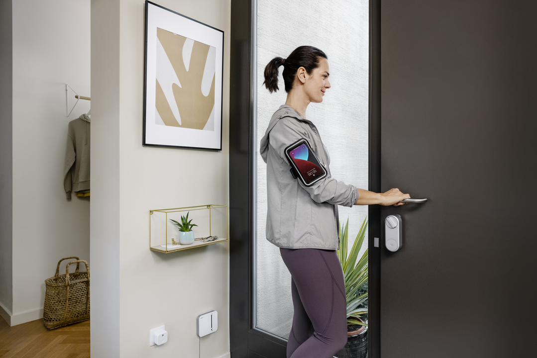 Eingebunden in smarte Automationen kann das smarte Türschloss noch viel mehr: Beim Verlassen der Wohnung das persönliche Szenario „Haus verlassen“ auslösen. Zudem müssen Sie sich keine Gedanken mehr über das Aktiveren oder Deaktiveren Ihres Alarmsystems machen: dies geschieht ebenfalls automatisiert, sobald die Tür ver- oder entriegelt wird. Zu einer von Ihnen definierten Uhrzeit gehen Sie darüber hinaus auf Nummer Sicher, dass die Haustür auch wirklich verriegelt ist.