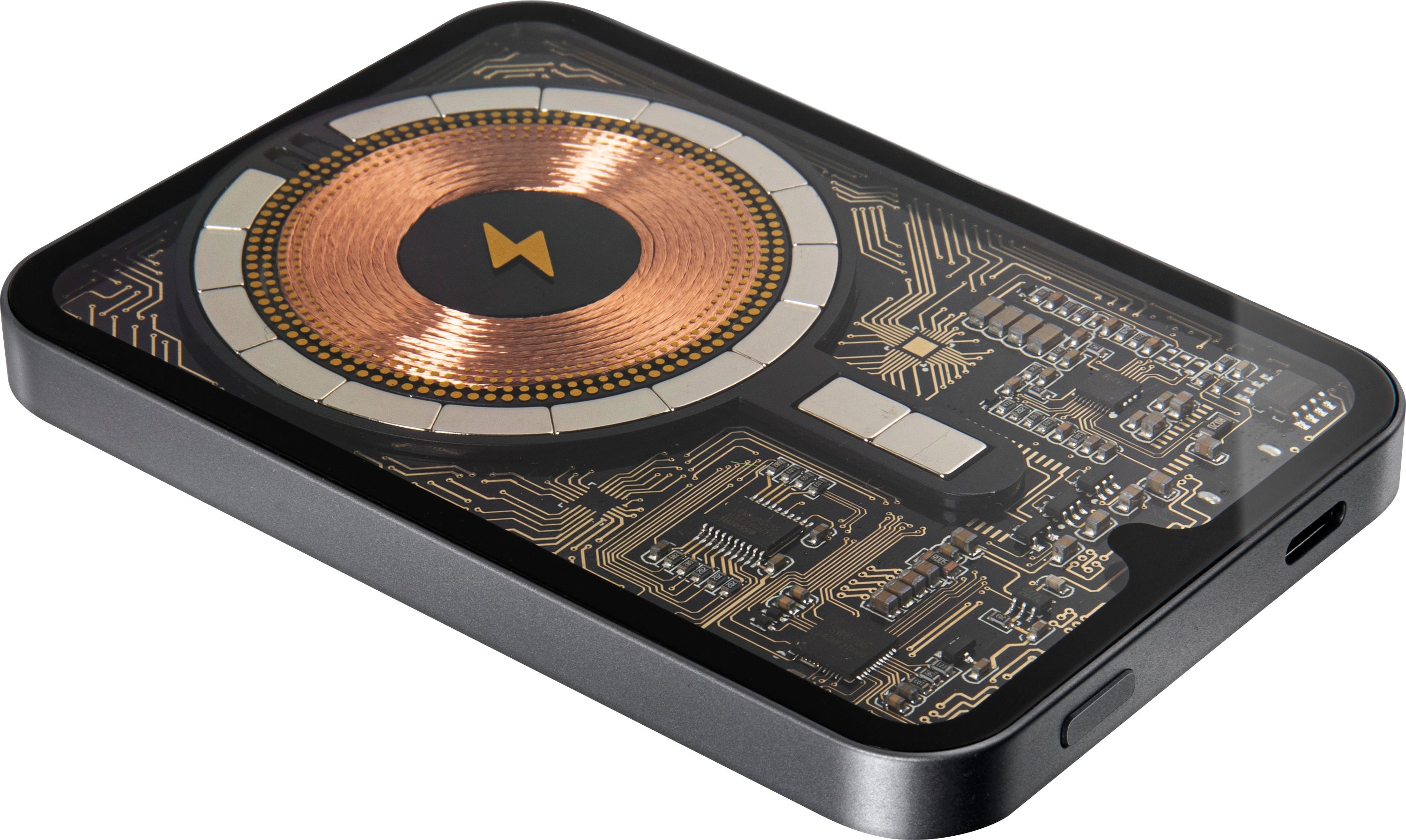 Sehen Sie das "Innenleben" dieses tragbaren Ladegeräts durch die transparente Rückseite.