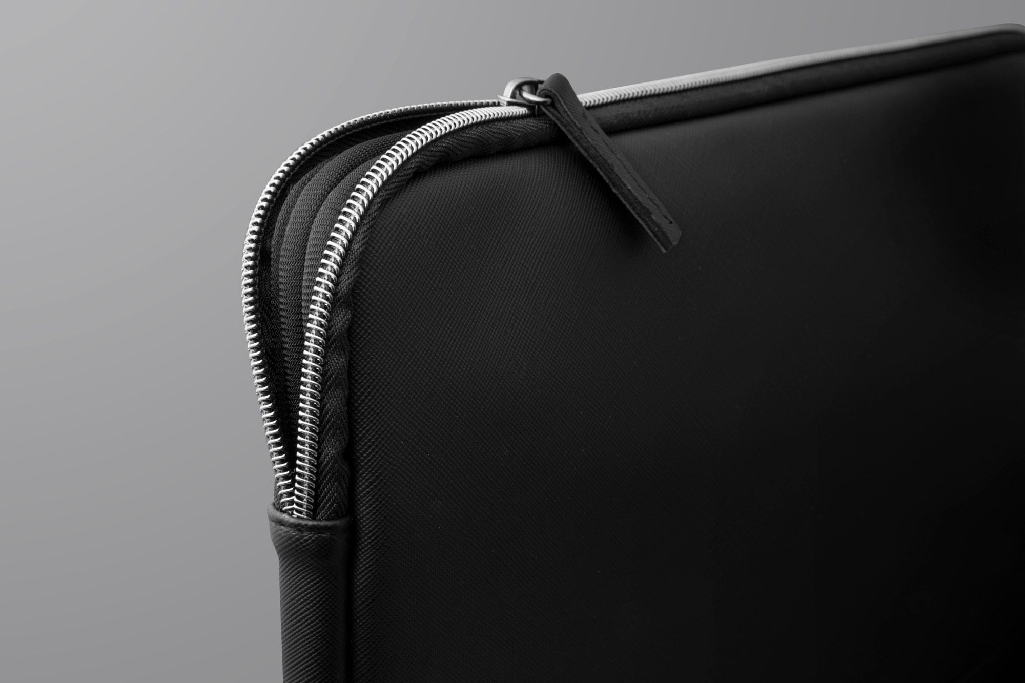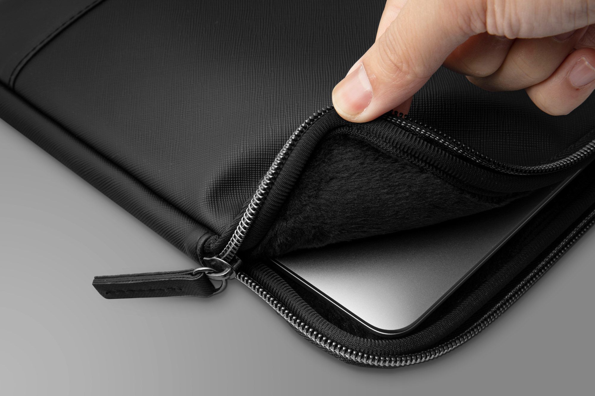 PRESTIGE MacBook Sleeve, im Kern aus hochdichtem Neopren gefertigt, mit geschmeidigem veganem Leder überzogen, bietet ein erstklassiges Gefühl und all den Schutz, den Sie jemals brauchen werden. Das ultraweiche Kunstpelzfutter im Inneren hält Ihr MacBook fest und sicher, während der interne Reißverschlussschutz dafür sorgt, dass beim Ein- und Ausziehen Ihres MacBook keine versehentlichen Kratzer entstehen. Erhältlich in luxuriösem Taupe oder klassischem Schwarz oder adrettem Dunkelblau, sieht die Prestige MacBook-Hülle in jedem Szenario sensationell aus.