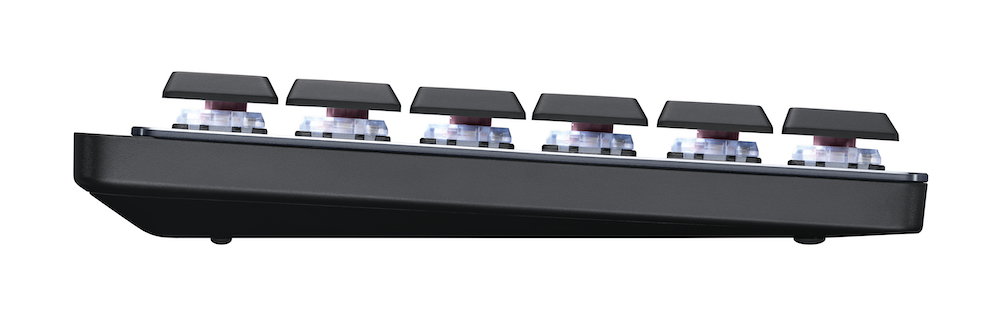 Flache mechanische Switches sorgen für ein neuartiges Tippgefühl. Ultrapräzise und stabile Switches bieten einen großen und angenehm vertrauten Tastenhub bei flachem Formfaktor. Ihre Finger gleiten mühelos über die matte Oberfläche der Tasten – und zweifarbige Tastenkappen machen einfach, Ihre Finger zu positionieren und unterbrechungsfrei zu arbeiten.IHR SETUP. IHRE WAHL