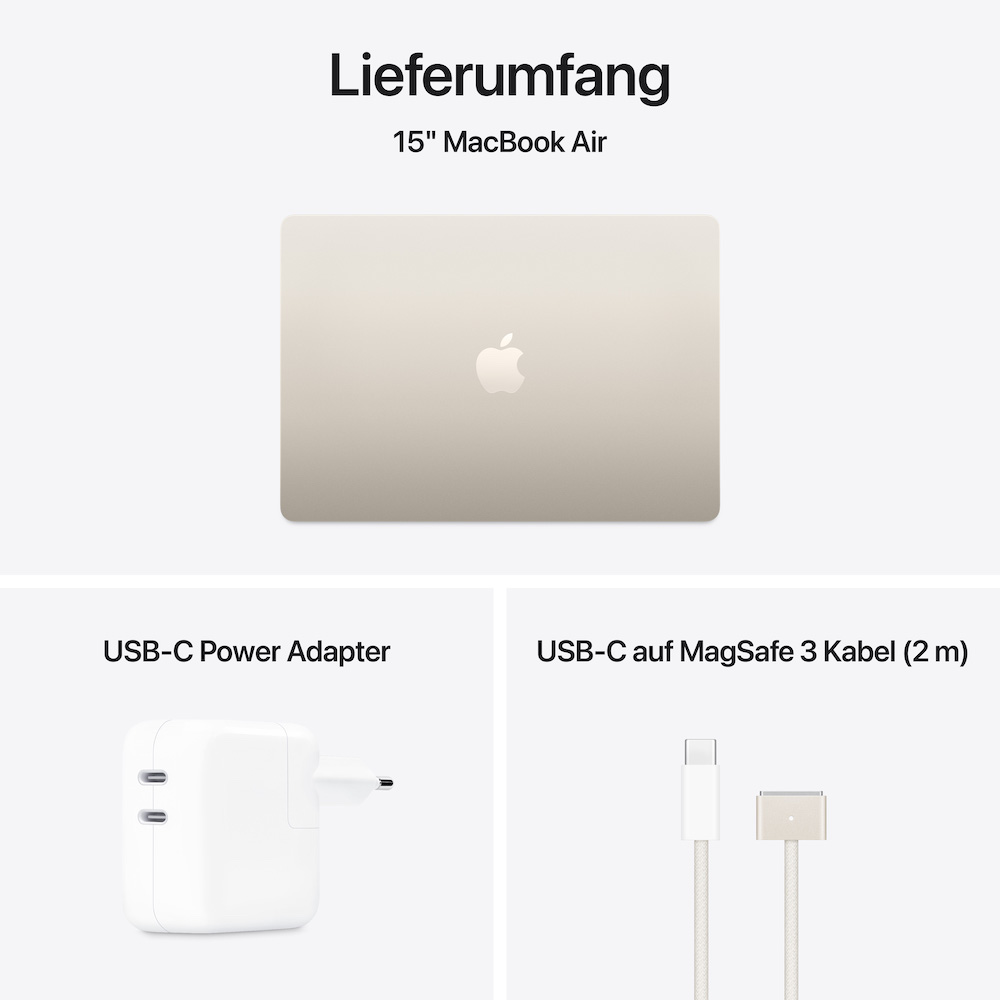 - VERBINDE ALLES – Das MacBook Air hat zwei Thunderbolt 4 Anschlüsse, einen MagSafe Ladeanschluss, einen Kopfhöreranschluss, WLAN 6E und Bluetooth 5.3. Und es unterstützt bis zu zwei externe Displays.