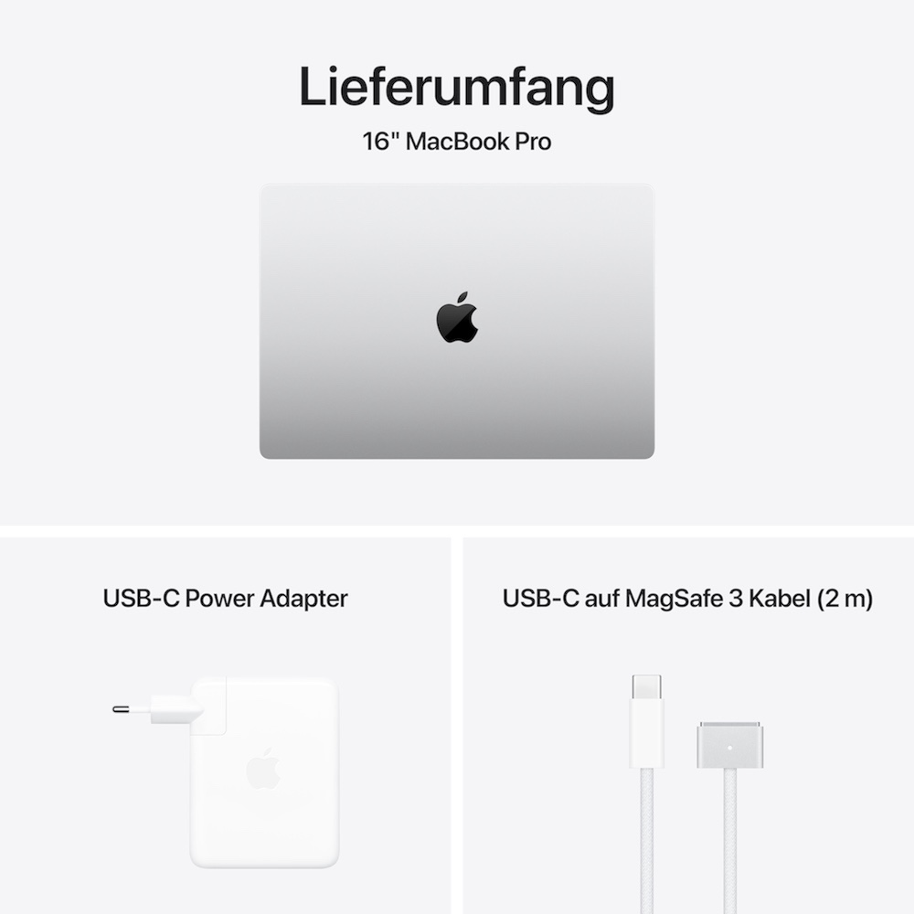 - VERBINDE ALLES – Das 16" MacBook Pro hat drei Thunderbolt 5 Anschlüsse, einen MagSafe 3 Ladeanschluss, einen SDXC Kartensteckplatz, einen HDMI Anschluss und einen Kopfhöreranschluss. Und es unterstützt bis zu zwei externe Displays mit dem M4 Pro oder bis zu vier mit dem M4 Max.