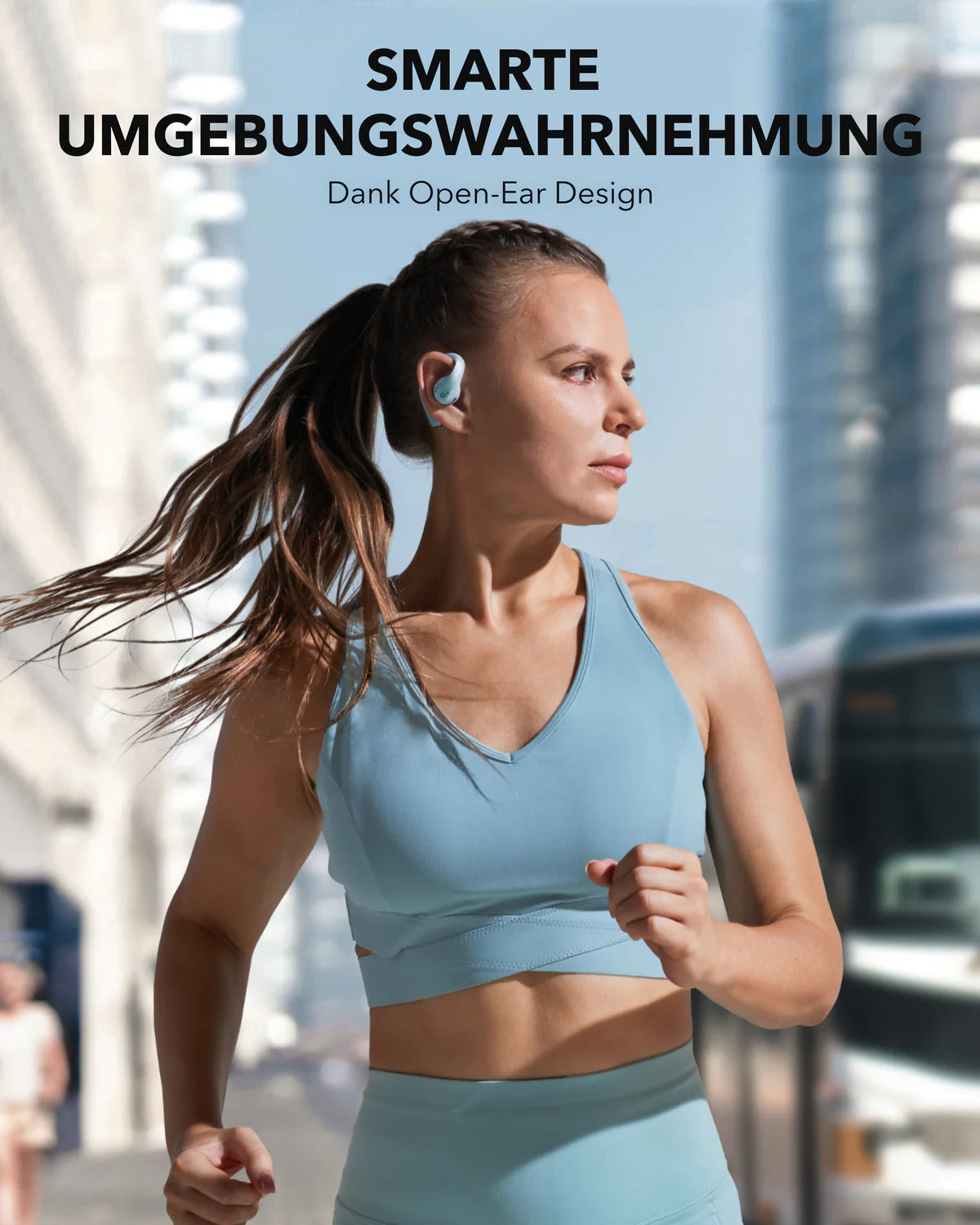 Das Soundcore AeroFit Pro ist mit KI-gestützter Geräuschunterdrückung und Beamforming-Mikrofontechnologie ausgestattet und bietet kristallklaren Klang, so dass jedes Gespräch so klingt, als würden Sie sich von Angesicht zu Angesicht unterhalten.