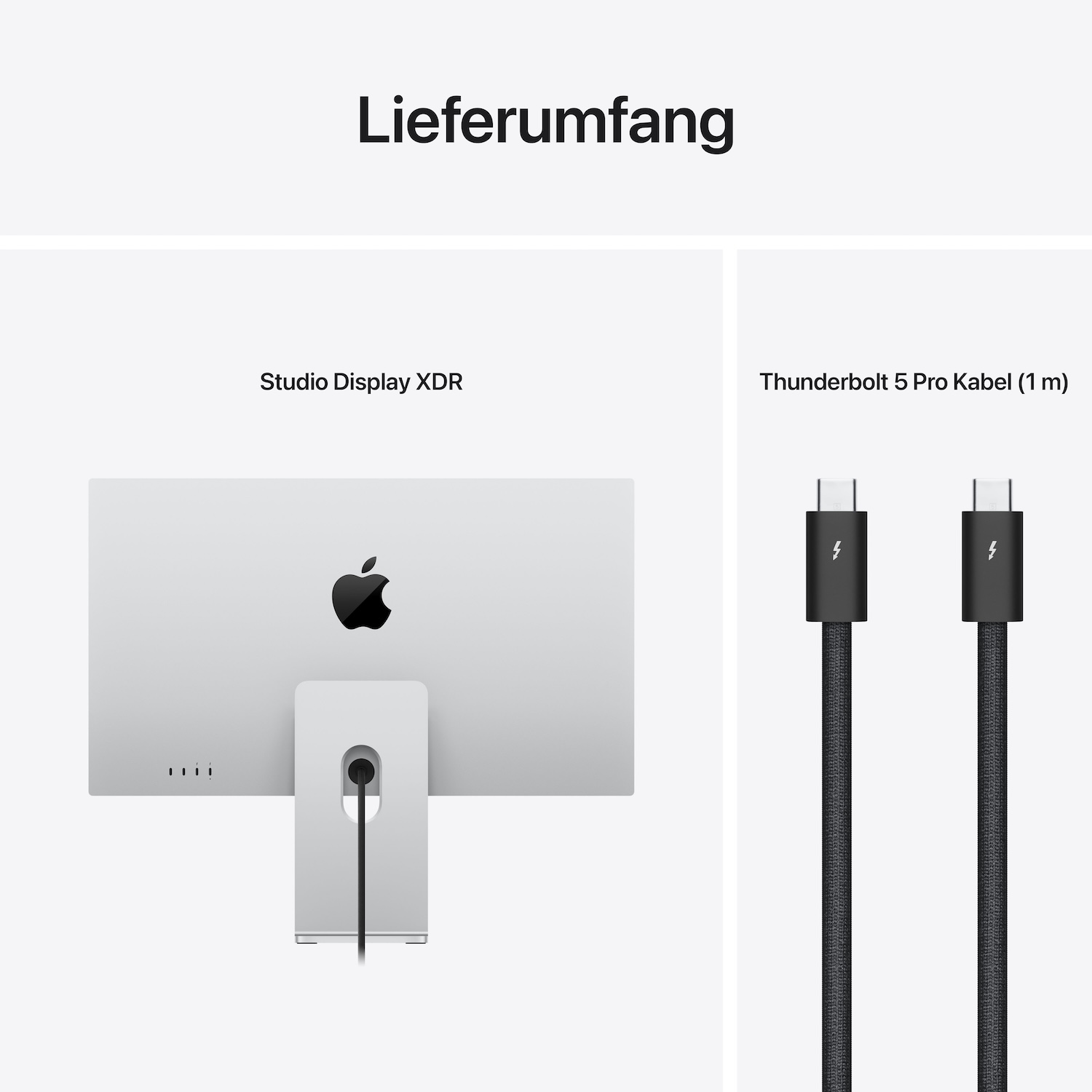 - Zwei Thunderbolt 5 Anschlüsse. Schalte ein zweites Studio Display XDR in Reihe und bring deine Projekte zum Leuchten.