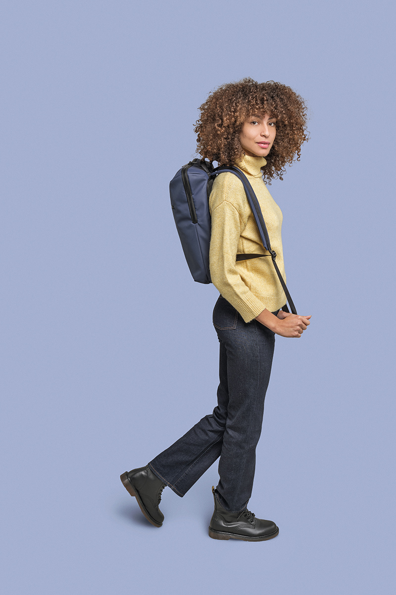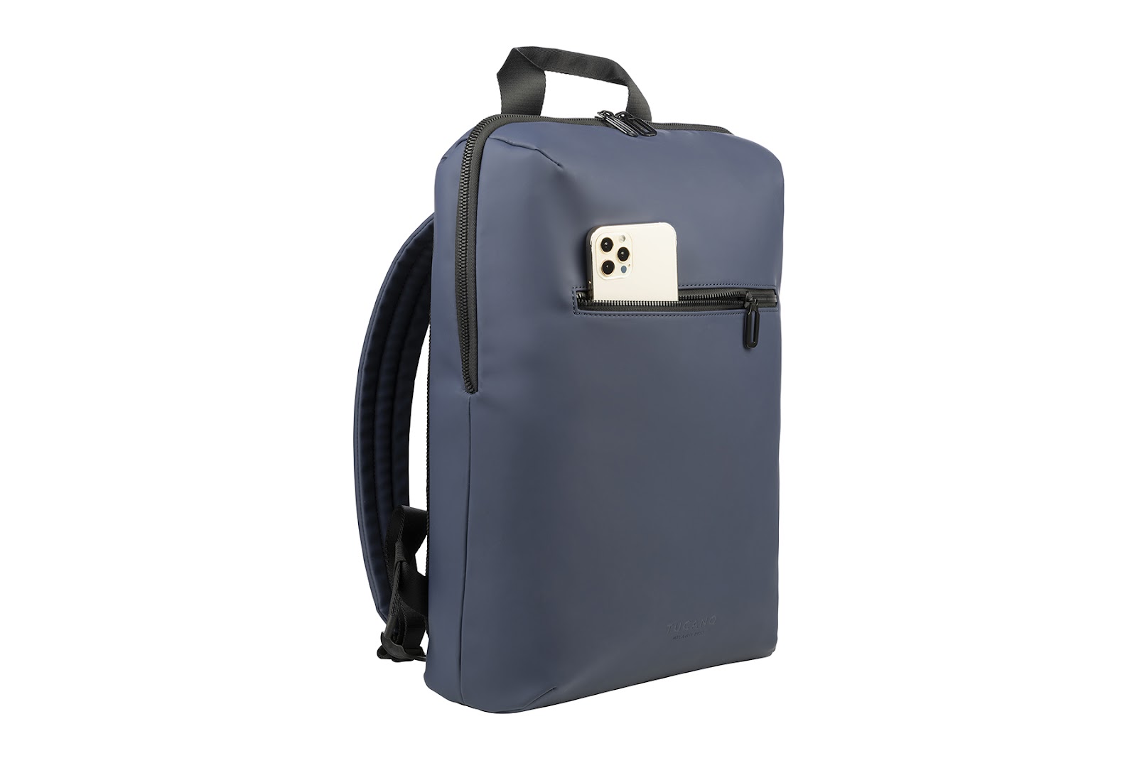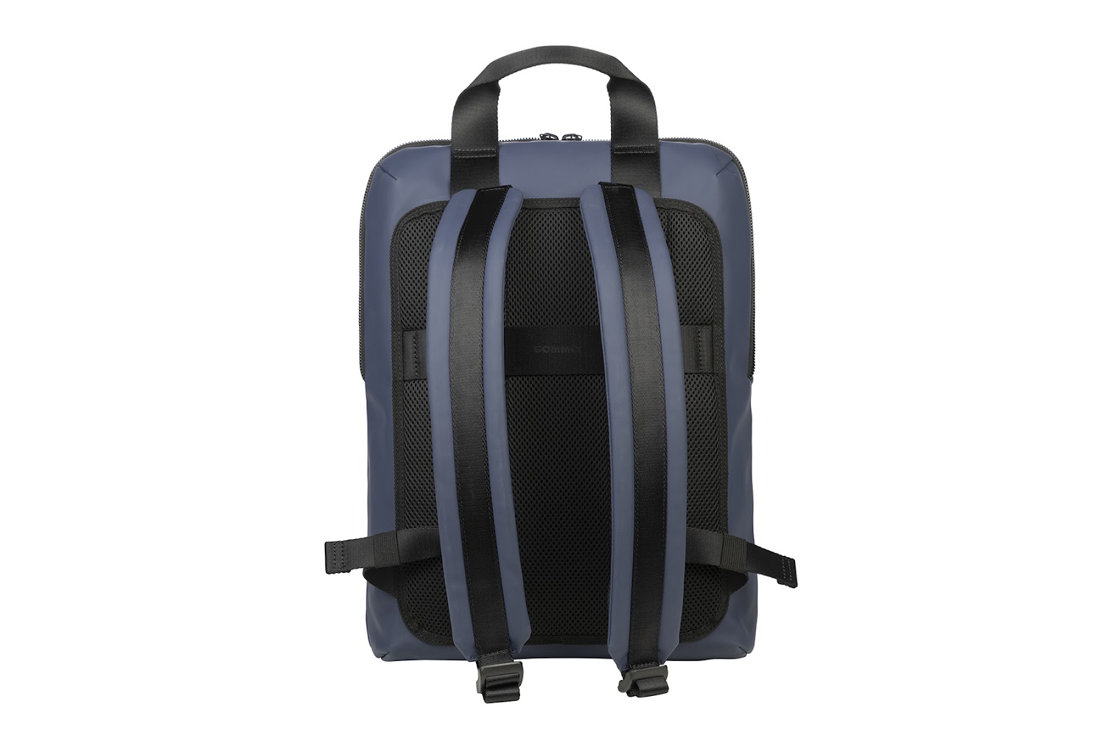 Rucksack mit minimalistisch-sportlichem Design für 15,6"-Laptops und 16"-MacBooks, aus gummiertem Material. Ausgestattet mit einem großen Fach verfügt der Gommo-Rucksack über eine Innentasche für Laptops und eine Außentasche für Zubehör sowie einen atmungsaktiven Netzrücken mit angebrachtem Trolley-Gurt.