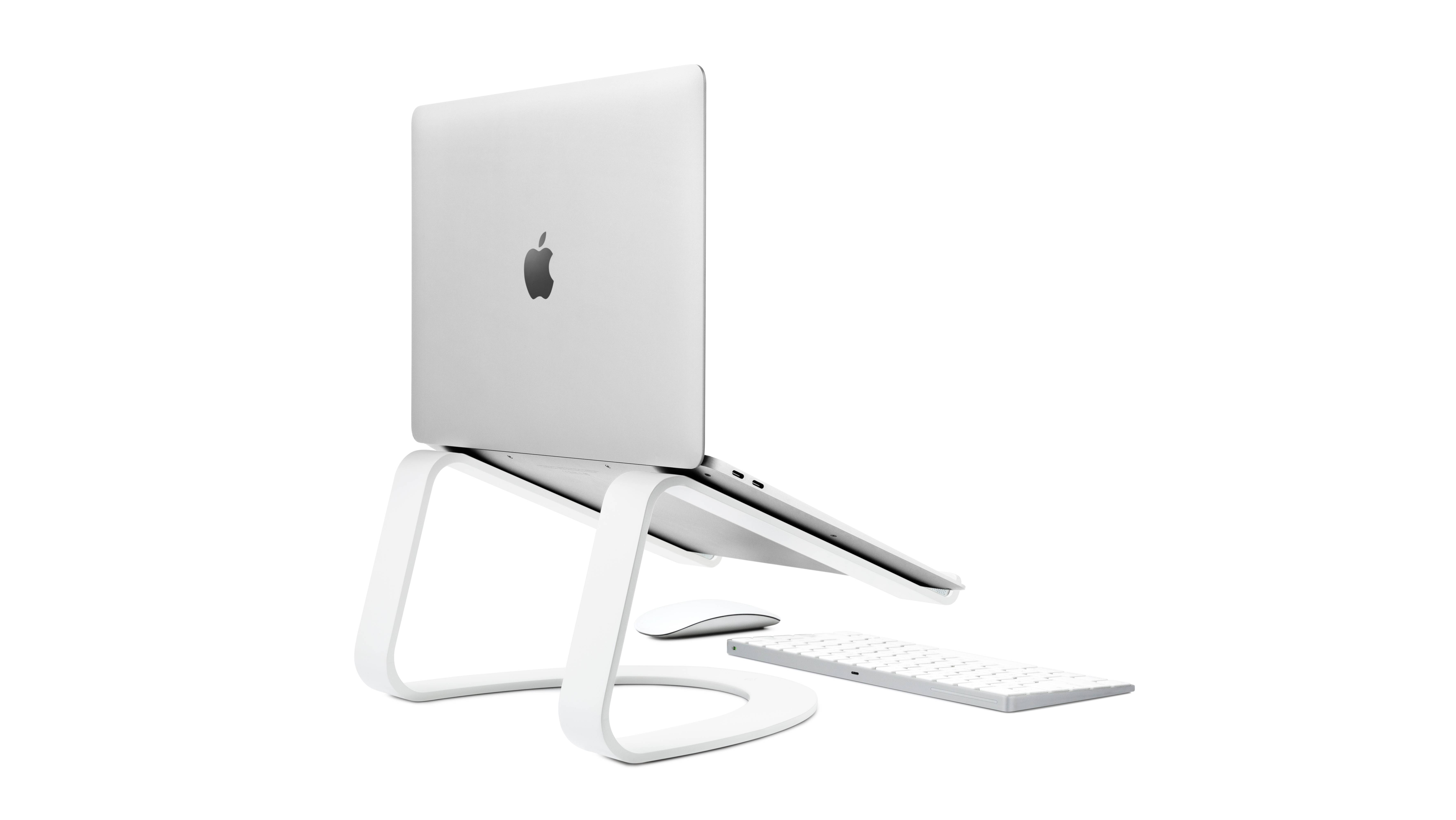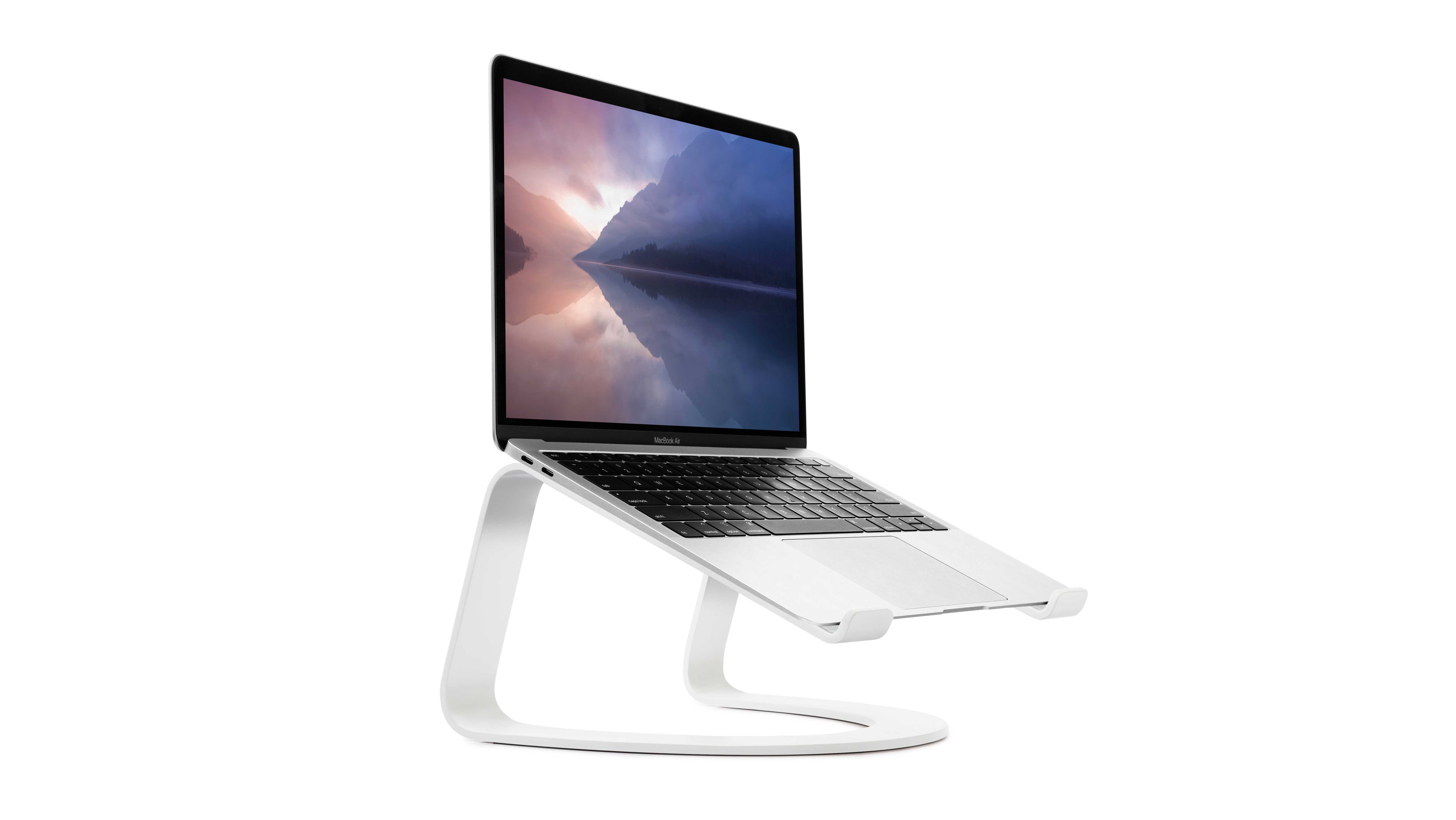 Curve ist ein eleganter Ständer aus Aluminium mit dessen Hilfe das Notebook oder MacBook bequem in einen Desktop verwandeln lässt.