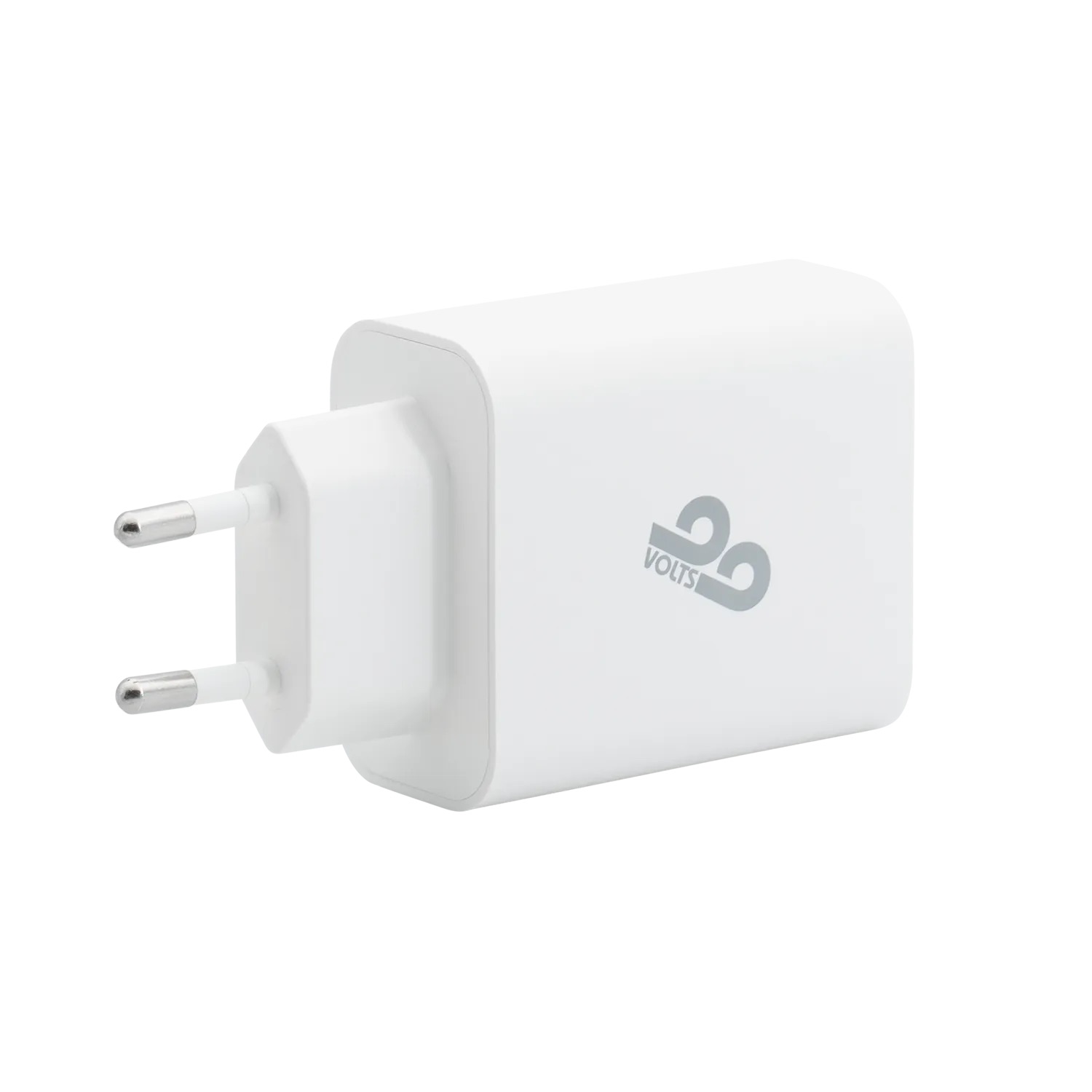 Der 99VOLTS USB-C Power Adapter liefert 40 W (2 Ports je 20 W) Ladeleistung. Damit lassen sich auch zwei Geräte gleichzeitig mit voller Power versorgen. Robustes Polycarbonat-Gehäuse, geringes Gewicht (103 g) und moderne Sicherheitszertifikate sorgen für zuverlässiges und sicheres Laden. Ideal für iPhones, iPads, Android-Geräte und mehr.