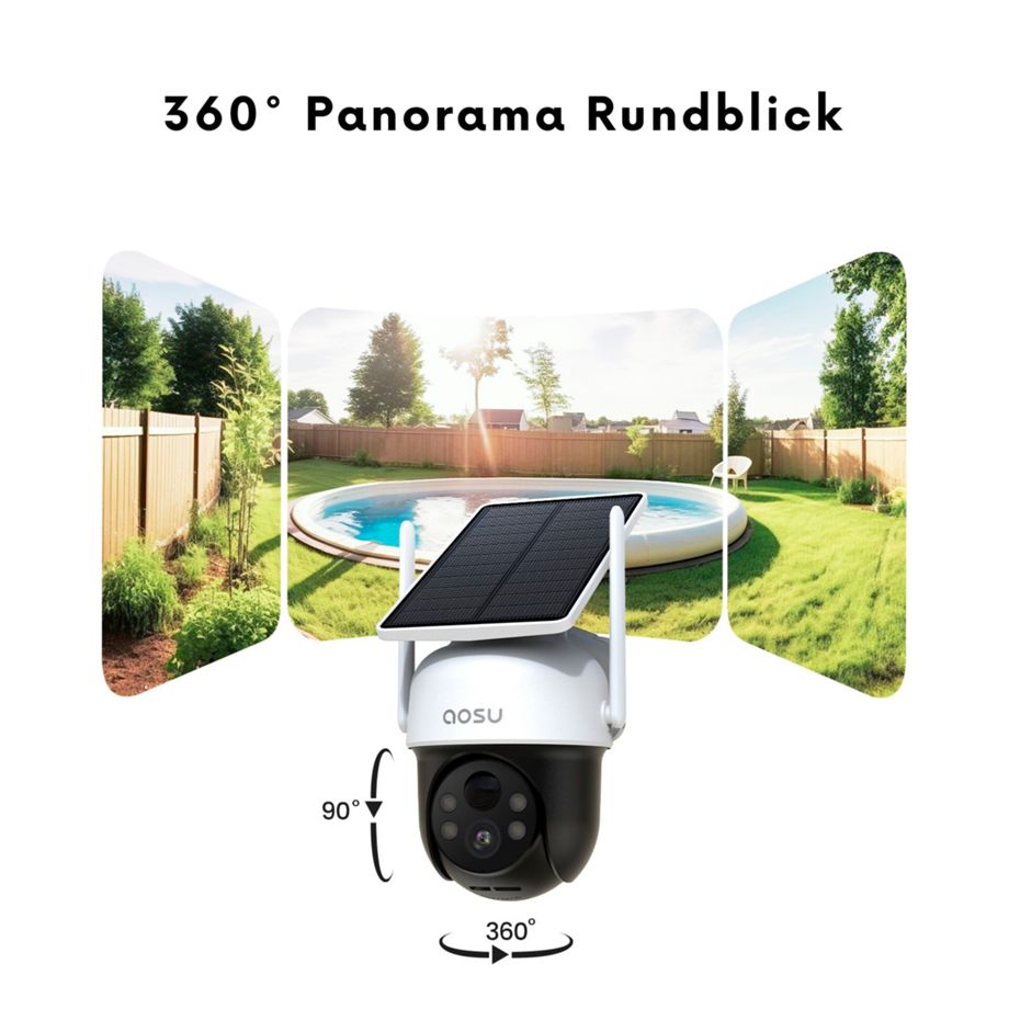 Die aosu SolarCam D1 Classic ist eine vollständig schwenk- und neigbare Außenkamera mit 2K-Auflösung und 360°-Rundumsicht, integriertem Solarpanel und KI-gestützter Objekterkennung. Sie ermöglicht eine lückenlose Überwachung im Außenbereich, erkennt Personen automatisch und verfolgt Bewegungen in Echtzeit.
