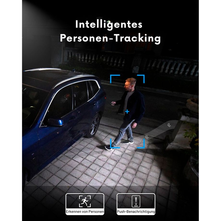 - Smarte Außenkamera mit 360°-Rundumsicht und 2K-Auflösung für eine lückenlose Überwachung