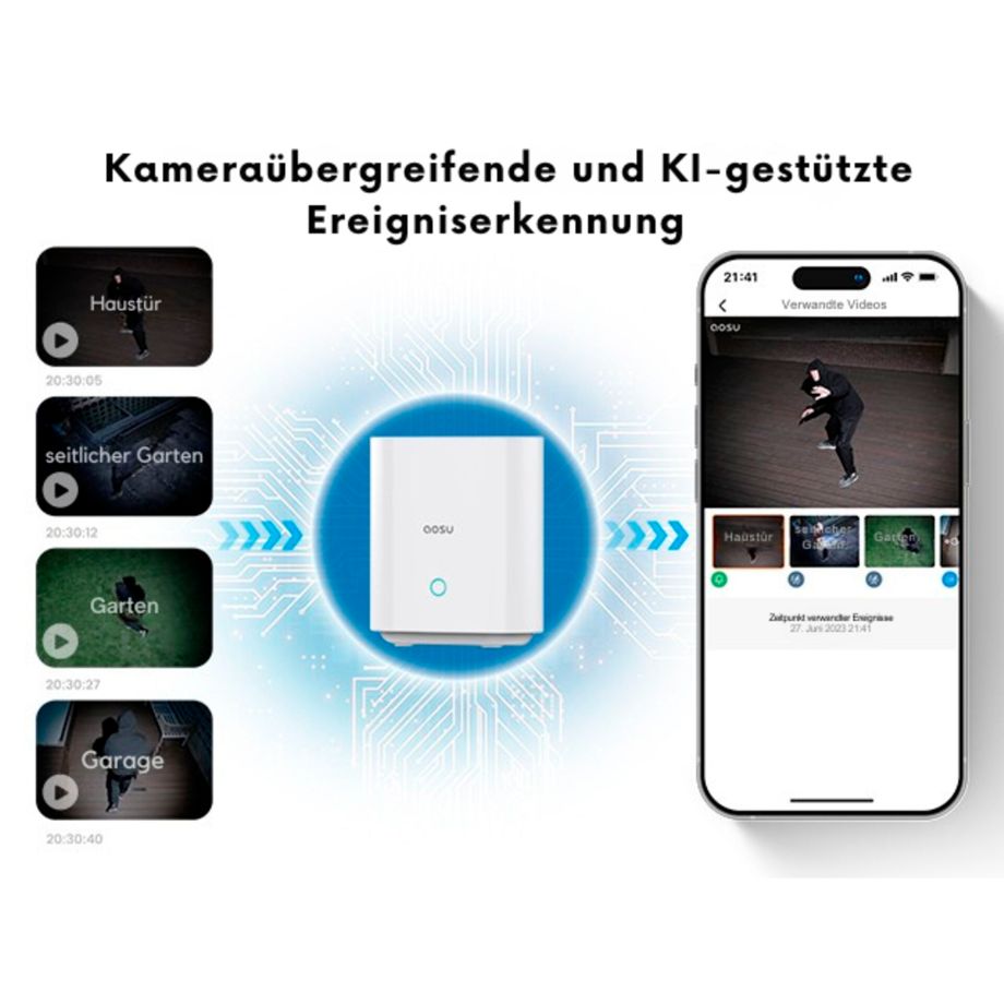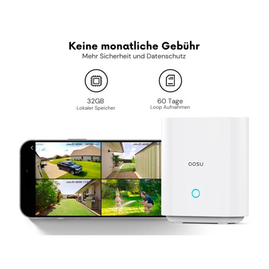 Eine hochauflösende 2K-Bildqualität sorgt dabei für detailreiche Aufnahmen – sowohl bei Tageslicht als auch in der Nacht. Die Videoaufzeichnung können optional lokal auf einer microSD-Karte (nicht im Lieferumfang enthalten) erfolgen, sodass eine Nutzung ohne Cloud-Anbindung möglich ist. Ergänzend bietet die aosu App eine strukturierte Ereignisverwaltung mit Smart Playback-Funktion, um relevante Sequenzen gezielt wiederzufinden.