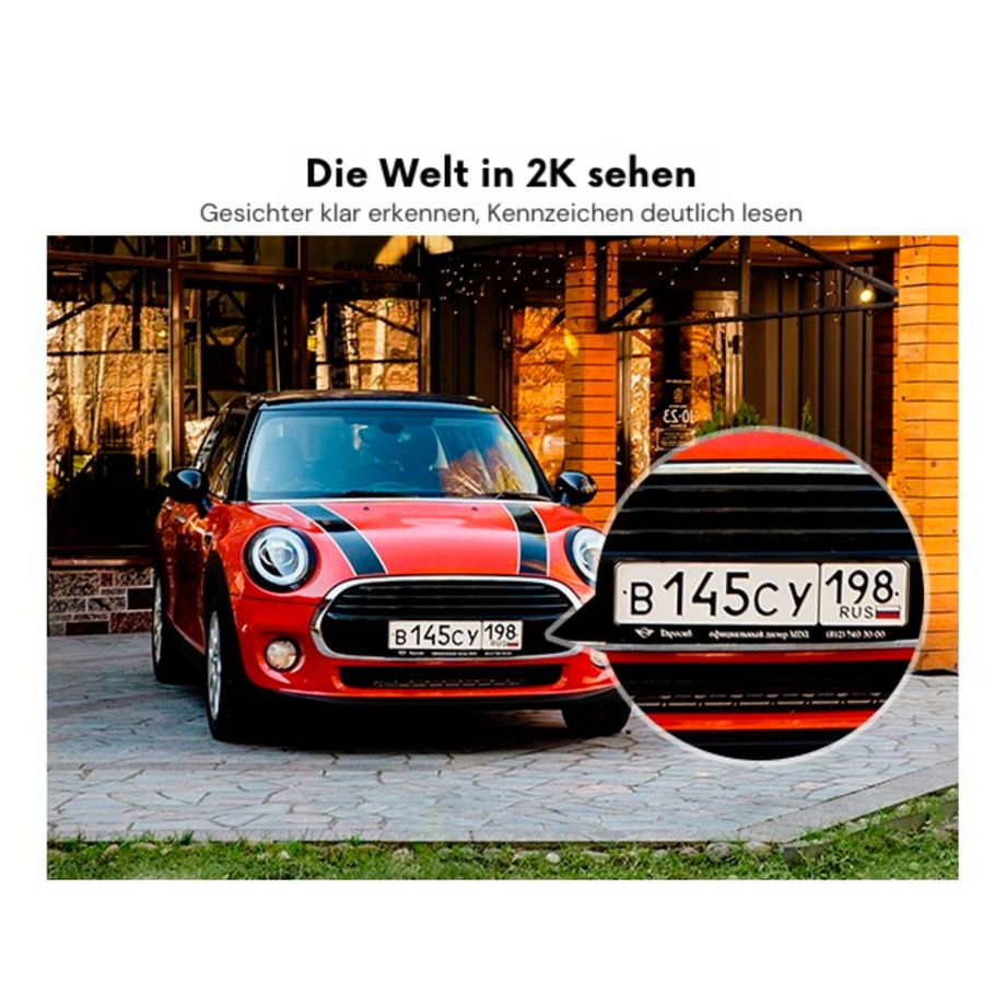- Smarte Außenkamera mit 360°-Rundumsicht und 2K-Auflösung für eine lückenlose Überwachung