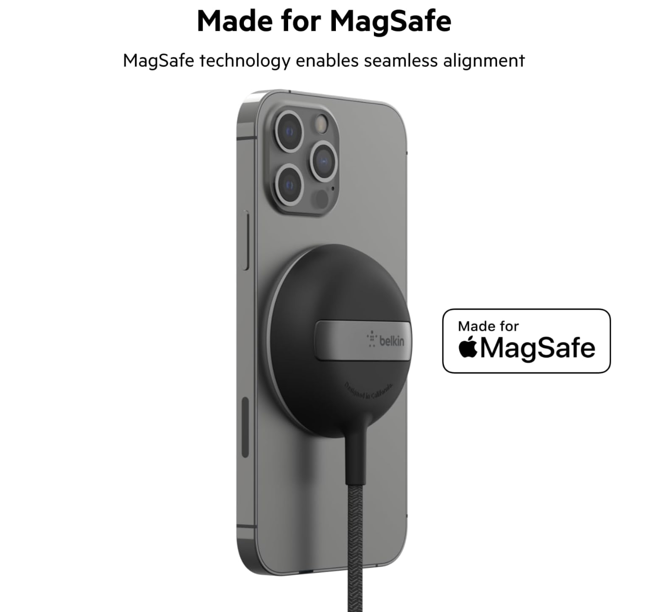 Gratis zum Kauf eines iPhone 15 dazu: Belkin Wireless MagSafe Ladepad.