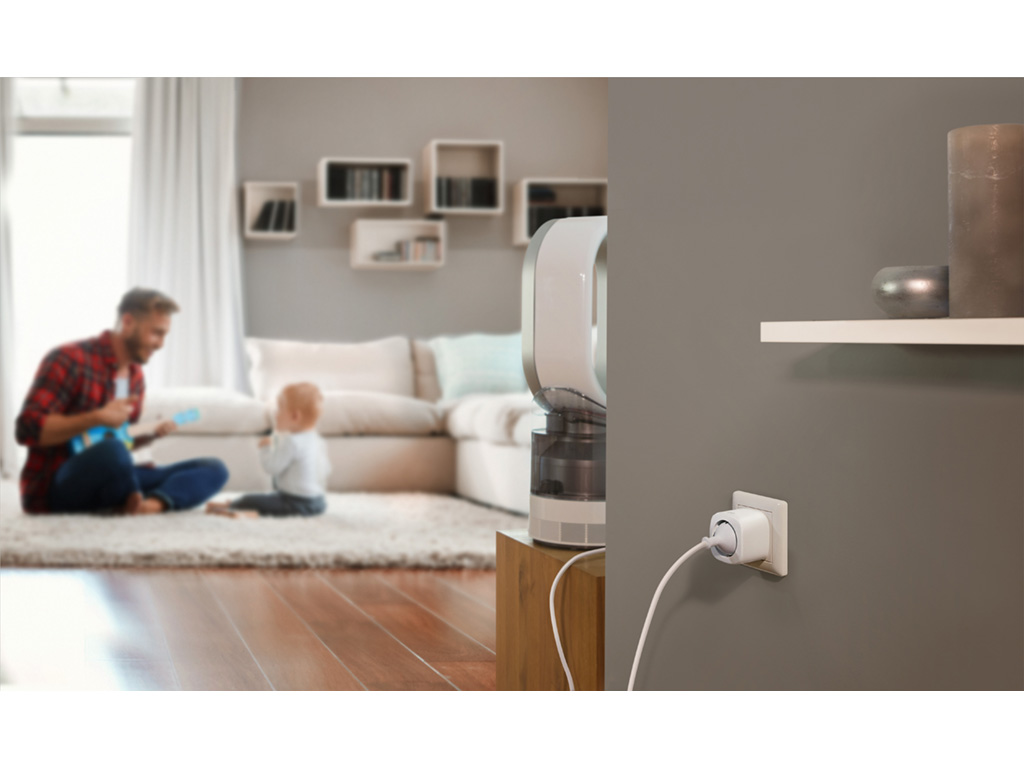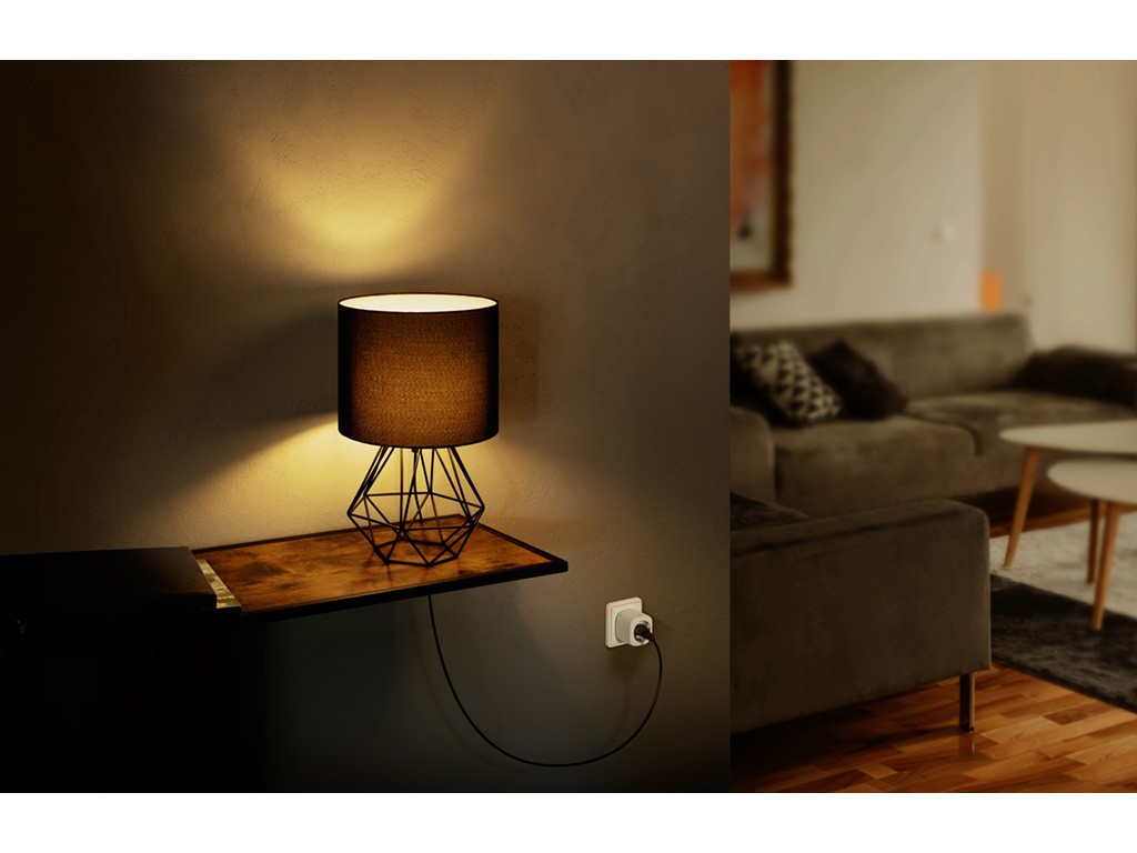 Schalte deine Leuchten und Geräte per Sprache oder App ein und aus, und steuere sie von unterwegs.