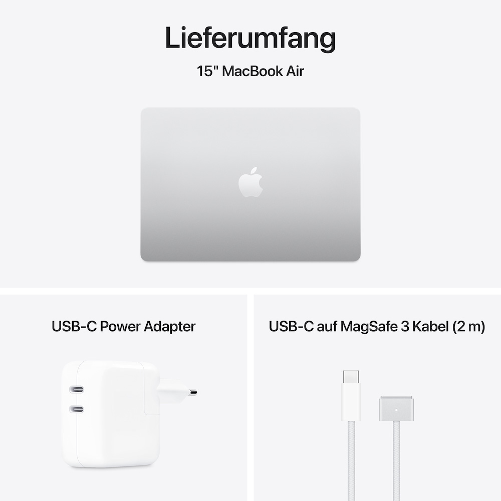- VERBINDE ALLES – Das MacBook Air hat zwei Thunderbolt 4 Anschlüsse, einen MagSafe Ladeanschluss, einen Kopfhöreranschluss, WLAN 6E und Bluetooth 5.3. Und es unterstützt bis zu zwei externe Displays.
