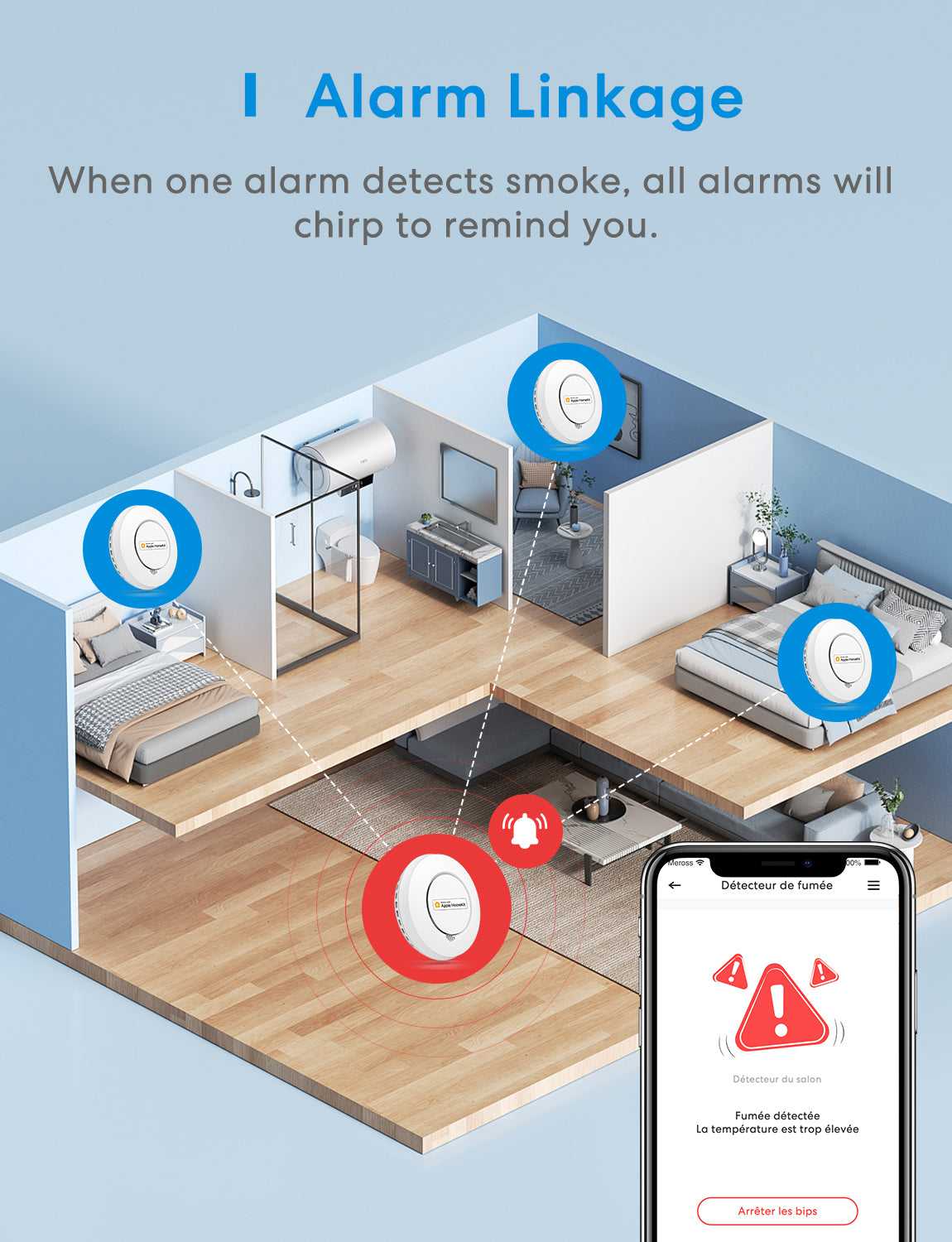 Ihre Meross-App oder Apple Home-App erhält sofort eine Warnung, wenn eine Gefahr eintritt.
