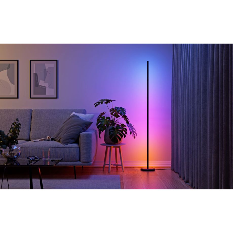 Mit der Nanoleaf Matter Smart Multicolor Floor Lamp erstrahlen Innenräume in farbenreicher Akzent- und Ambientebeleuchtung. Die schlanke LED-Stehleuchte mit modularer Steuerung für unterstützt den Matter-Standard über WLAN und lässt sich nahtlos in gängige Smart-Home-Systeme integrieren – ideal für individuelle Lichtszenarien im Wohn- oder Arbeitsbereich.