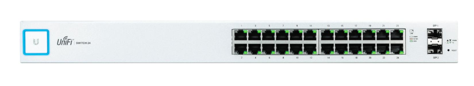 Der 24 Port UniFi Switch hat 2 SFP Ports welche Glasfaserverbindungen mit bis zu 1 Gbps ermöglichen.