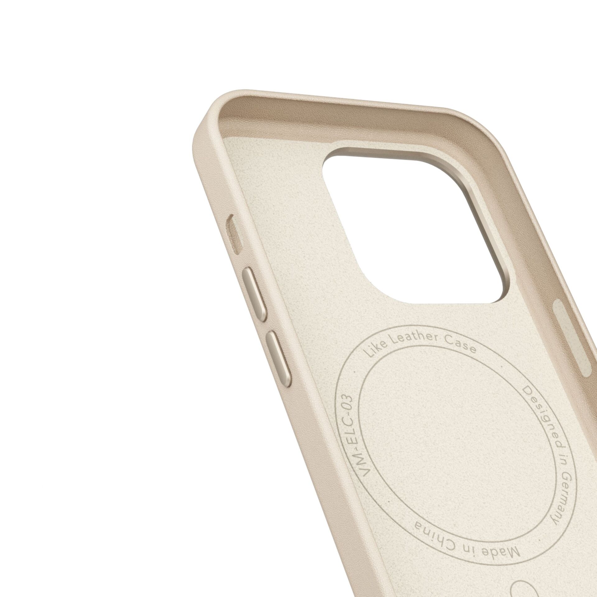 Feine Details wie präzise gefertigte Metallknöpfe und ein passgenauer Kameraring unterstreichen das minimalistische Design. Integrierte Magnete ermöglichen volle MagSafe-Kompatibilität, etwa für Ladegeräte oder magnetische Wallets. Trotz seiner Schutzfunktionen bleibt das Case schlank, leicht und angenehm unauffällig im Gebrauch.