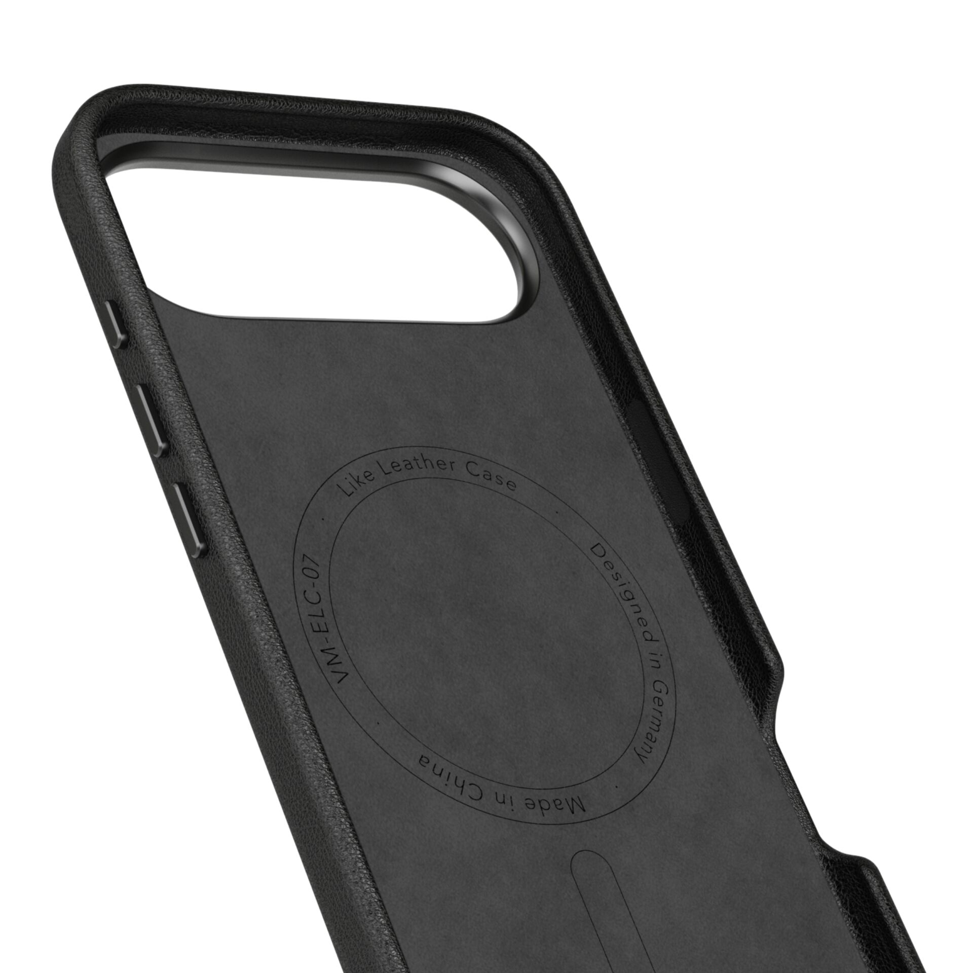Feine Details wie präzise gefertigte Metallknöpfe und ein passgenauer Kameraring unterstreichen das minimalistische Design. Integrierte Magnete ermöglichen volle MagSafe-Kompatibilität, etwa für Ladegeräte oder magnetische Wallets. Trotz seiner Schutzfunktionen bleibt das Case schlank, leicht und angenehm unauffällig im Gebrauch.