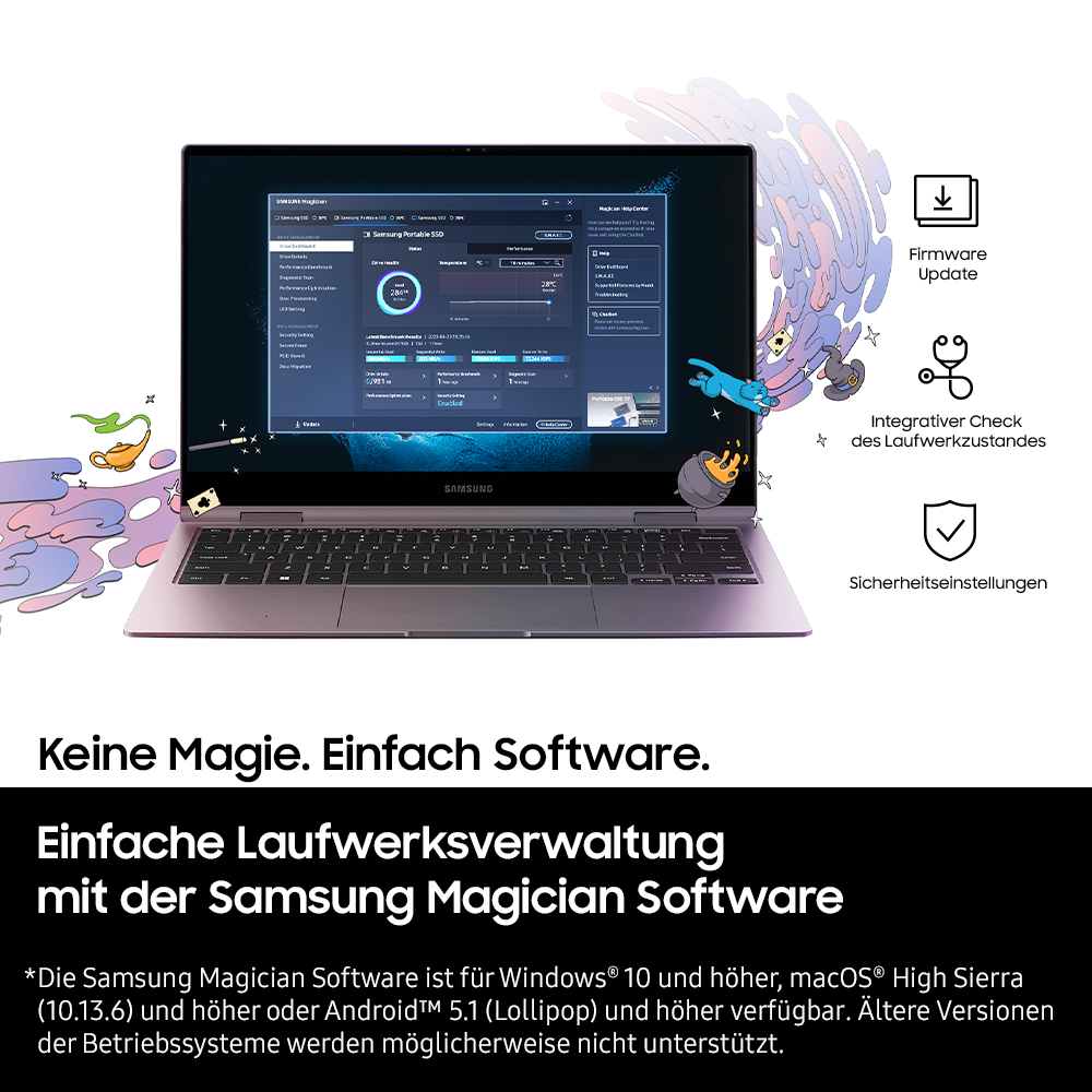 Mehr Tempo. Mehr Sicherheit. Mehr Freiheit. Mit den Samsung Portable SSDs T7 und T7 Shield sicherst, überträgst und nutzt Du Deine Daten blitzschnell – egal ob im Büro, im Homeoffice, beim Gaming oder unterwegs.