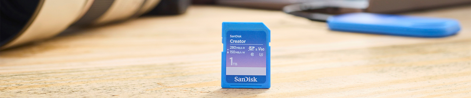 Professionelle SD-Karte für die professionelle Content-Creation. Beflügel Deine Kreativität mit der SanDisk Creator SD-UHS-II-Karte. Diese High-Performance Speicherkarte wurde speziell für Creators entwickelt, die ihre professionellen Fotos und Videos ausschließlich einem hochzuverlässigen Speicher anvertrauen wollen. Mit Kapazitäten zwischen 128 GB und 1 TB erhhältst Du all den Speicherplatz, den Du benötigst, um Deiner Inspiration zu folgen, Aufnahmen zu bearbeiten und Beiträge noch schneller zu posten, damit Du mehr Zeit haben, neue Follower zu gewinnen und Deine Arbeit zu verfeinern. Damit das noch besser funktioniert, schenken wir Dir ein einmonatiges Probeabo von Adobe Creative Cloud. Nutze all die Tools, die Du benötigst, um Deine Ideen zu verwirklichen.