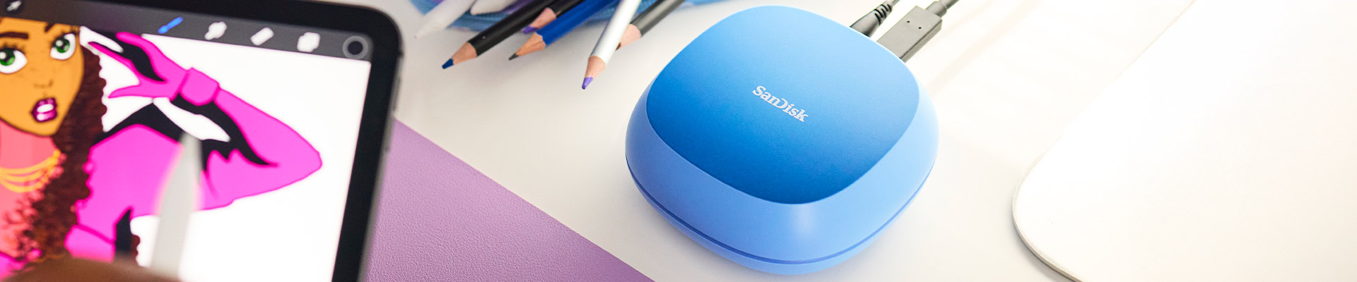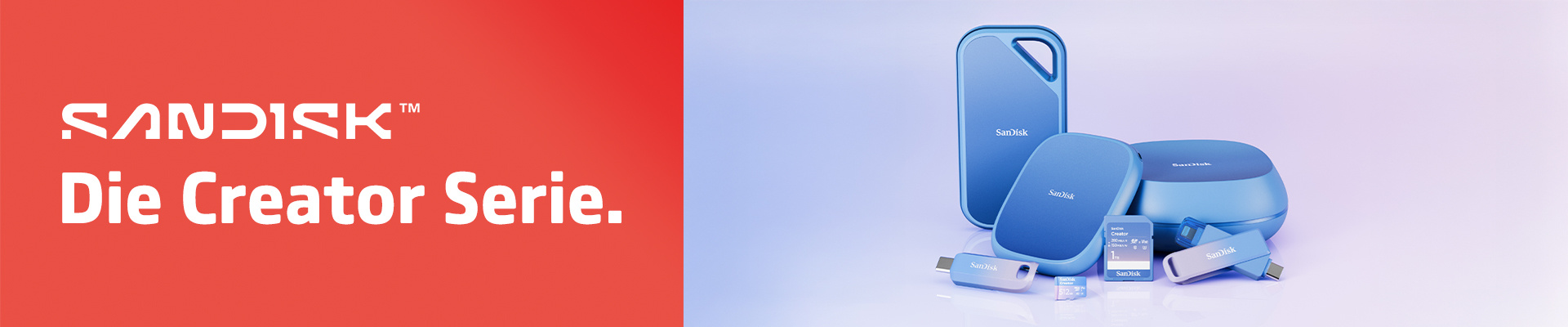Die SanDisk Creator Desk Drive ist eine kompakte Speicherlösung mit großer Kapazität für Deine kreativen Inhalte. Dank ihrer hohen Geschwindigkeit können Sie Ihre Workflows effizient beschleunigen. Die SanDisk Creator Desk Drive ist mit bis zu 8 TB erhältlich. Dabei erreicht sie bis zur 4-fachen Lesegeschwindigkeit einer Desktopfestplatte, schnell genug für die flüssige Medienbearbeitung oder die Übertragung großer Dateien. Die SSD verarbeitet zudem mühelos die großen Datenmengen, die bei der KI-gestützten Generierung von Inhalten anfallen. Damit Du Deine Kreativität noch intensiver ausleben können, ist im Lieferumfang ein einmonatiges Probeabo von Adobe Creative Cloud enthalten.