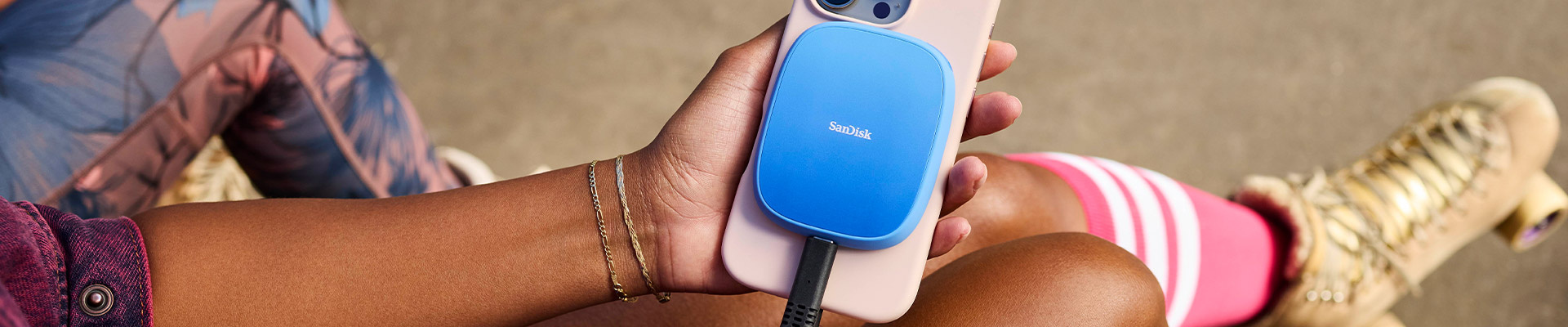 Mach Deine kreative Produktion mobil – mit der SanDisk Creator Phone SSD. Als Teil der SanDisk Creator Series wurde die SanDisk Creator Phone SSD speziell für die Content-Produktion unterwegs entwickelt. Sie lässt sich mühelos an dein MagSafe-kompatibles Smartphone anschließen. Nimm beeindruckende 4K-Videos mit 60 fps im Apple ProRes-Format auf und speichere deine Inhalte direkt auf dem Laufwerk – für einen nahtlosen Start in die Bearbeitung. Robust und zuverlässig – ganz gleich, wo Dich Deine Inspiration hinführt: Das Laufwerk überzeugt mit einem strapazierfähigen Silikongehäuse, Sturzschutz aus bis zu drei Metern Höhe sowie IP65-Zertifizierung gegen Wasser und Staub. Und damit Dein Workflow noch reibungsloser läuft, ist ein Monat Adobe Creative Cloud inklusive. SanDisk – Deine Tools für den Moment der Inspiration.